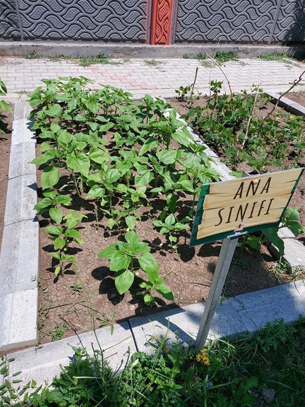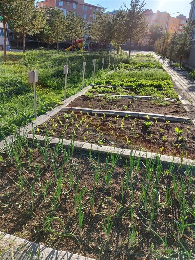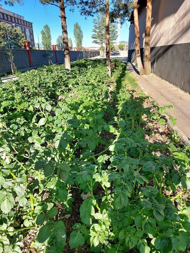 Kars Özel Çelik Başarı Koleji, üretim mantalitesini yerleştirmek açısından bahçede tarla ve bostan ekimi yaptı.
