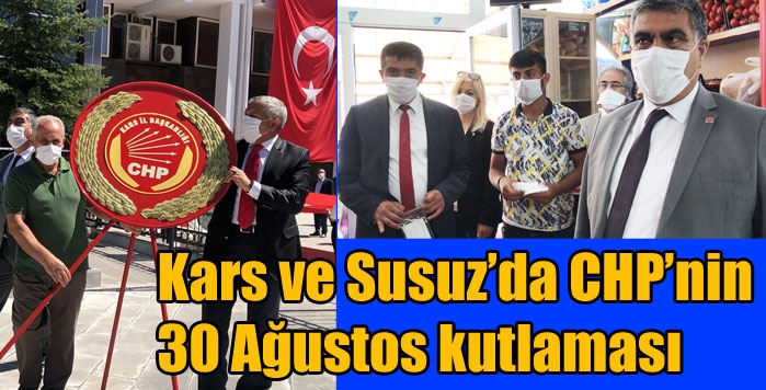 Cumhuriyet Halk Partisi (CHP) Kars İl Başkanlığı ile Susuz Belediyesi 30 Ağustos Zafer Bayramını kutlama etkinliği yaptı. Hükümet konağı önündeki Atatürk Anıtı’na çelenk sunan CHP heyeti İl Başkanı Taner Toraman’ın basın açıklamasının ardından Susuz ilçesine geçerek buradaki etkinliğe katıldı. CHP’li Susuz Belediye Başkanı Oğuz Yantemur basın açıklaması yaptı daha sonra esnaf ziyaretlerinde bulanarak bayramları kutlandı.