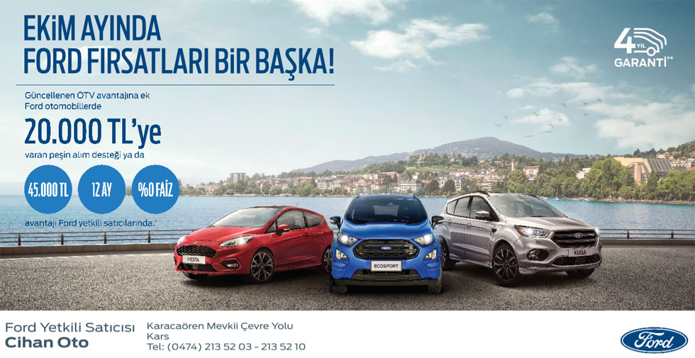 GÜNCELLENEN ÖTV AVANTAJLARINA EK FORD OTOMOBİLLERDE 20.000 TL’YE VARAN PEŞİN ALIM DESTEĞİ YADA 45.000 TL, 12 AY, %0 FAİZ VANTAVANTAJLARIYLA FORD YETKİLİ SATICISI CİHAN OTOMOTİV’DE