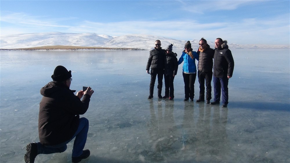 Doğu Anadolu Bölgesi’nin ikinci büyük gölü olan Kars ve Ardahan sınırları içindeki Çıldır Gölü’nün buz tutması renkli görüntüler ortaya çıkardı.