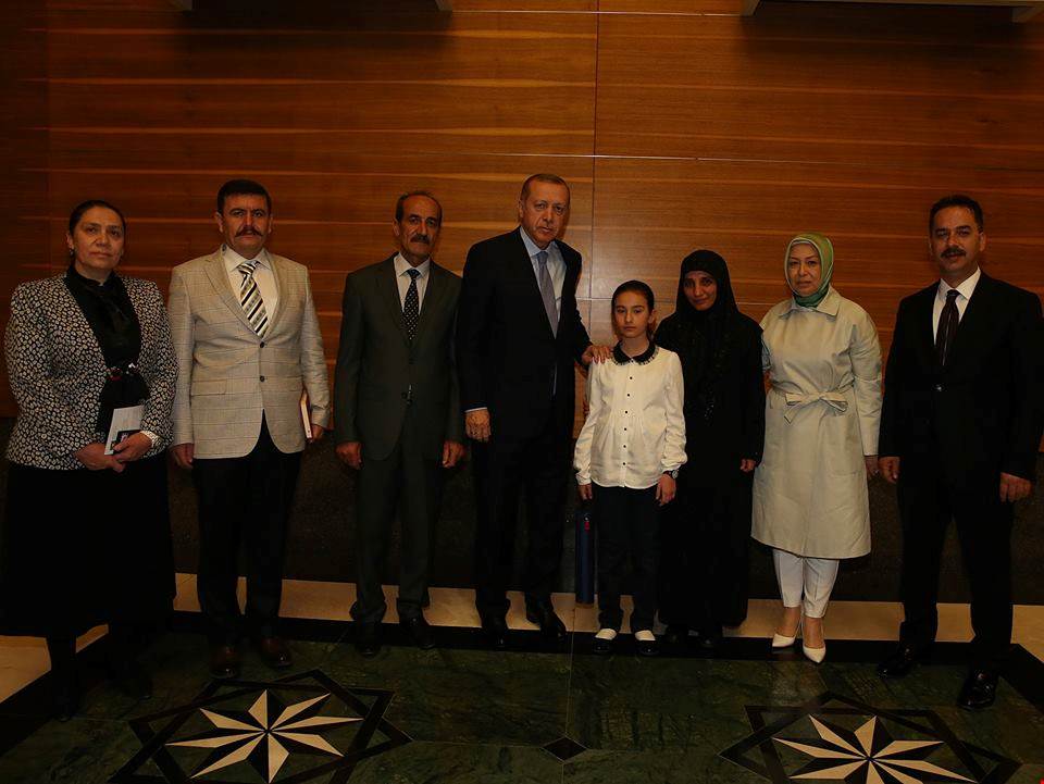 Cumhurbaşkanı Recep Tayyip Erdoğan, Erzincan Valisi Ali Arslantaş ve Erzincanlı Şehit Jandarma Er Fatih Çaybaşı’nın Ailesini kabul etti.