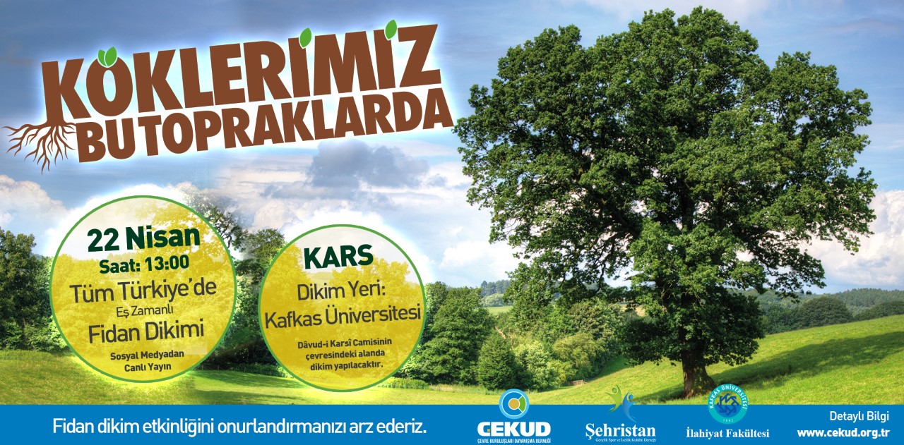 Kars Kafkas Üniversitesi İlahiyat Fakültesi, Tarım ve Hayvancılık İl Müdürlüğü, ÇEKÜD (Çevre Kuruluşları Dayanışma Derneği) ve Şehristan Gençlik Spor ve İzcilik Kulübü ortaklığıyla Fidan Dikim Etkinliği gerçekleştirilecek.