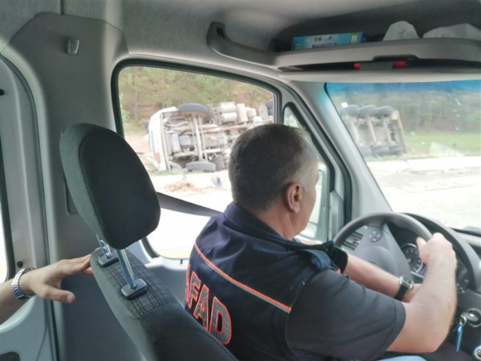 Yaralı TIR şoförünün sağlık durumunun iyi olduğu öğrenilirken, AFAD ekibi daha sonra deprem bölgesine hareket etti.