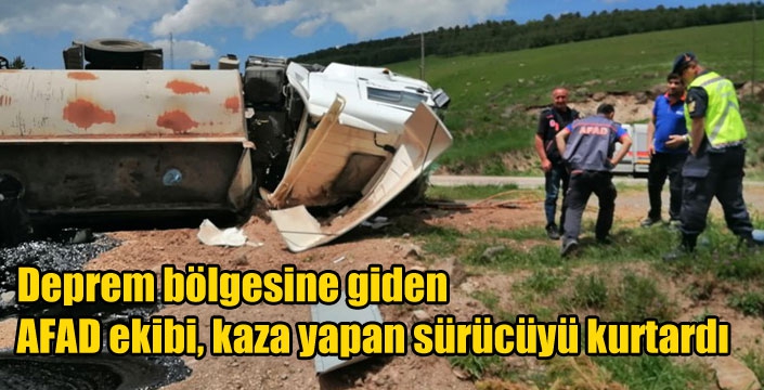Deprem bölgesine giden AFAD ekibi, kaza yapan sürücüyü kurtardı