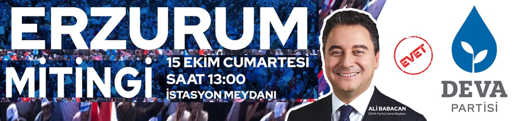 Deva Partisi Genel Başkanı Ali Babacan, Erzurum Mitingini 15 Ekim cumartesi günü saat: 13.00’de İstasyon meydanında düzenleyecek.