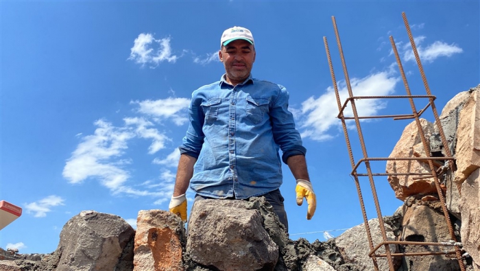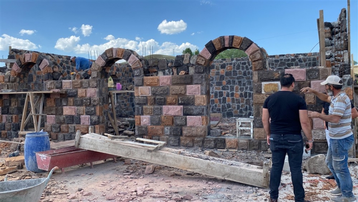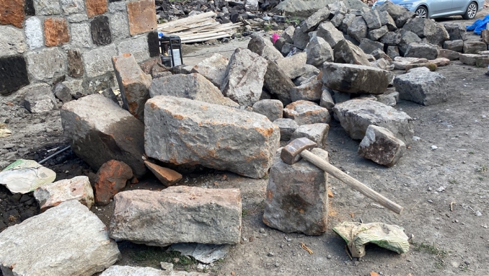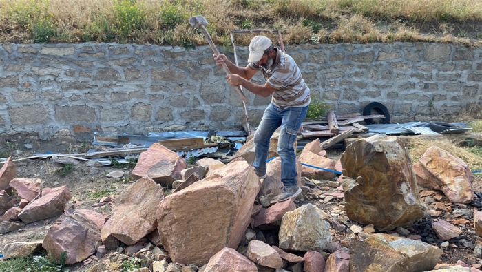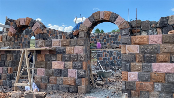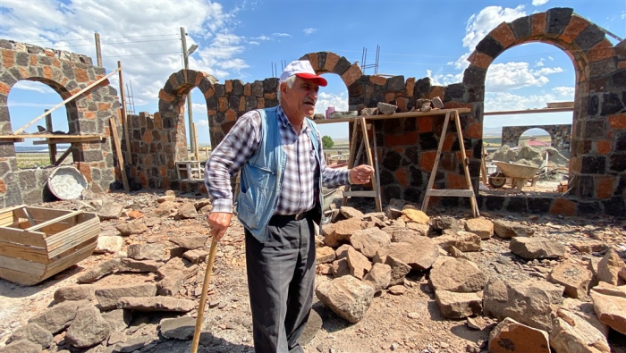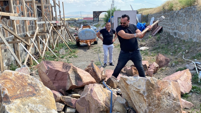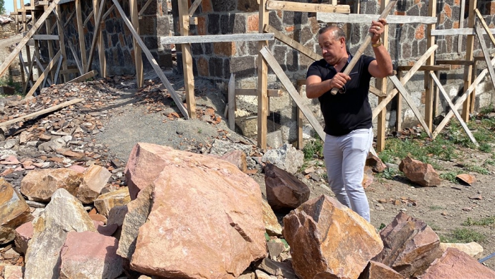 Kars’ın Arpaçay ilçesine bağlı Kümbet köyünde Uğur Boy’un babası Kadir Boy (61) için yaptırdığı renkli taş evin inşaatında çalışan Polat köylü dönemin son taş ustaları işçilikleriyle mesleği yürütecek çırak bulamamaktan şikayetçi. Doğal bir taş türü olan farklı renklerde ve şekillerde bulunabilen birçok mineralin bir araya gelmesiyle oluşan Kevek taşıyla yapımına başlanan evin bu yıl sonuna bitirilmesi planlanıyor.