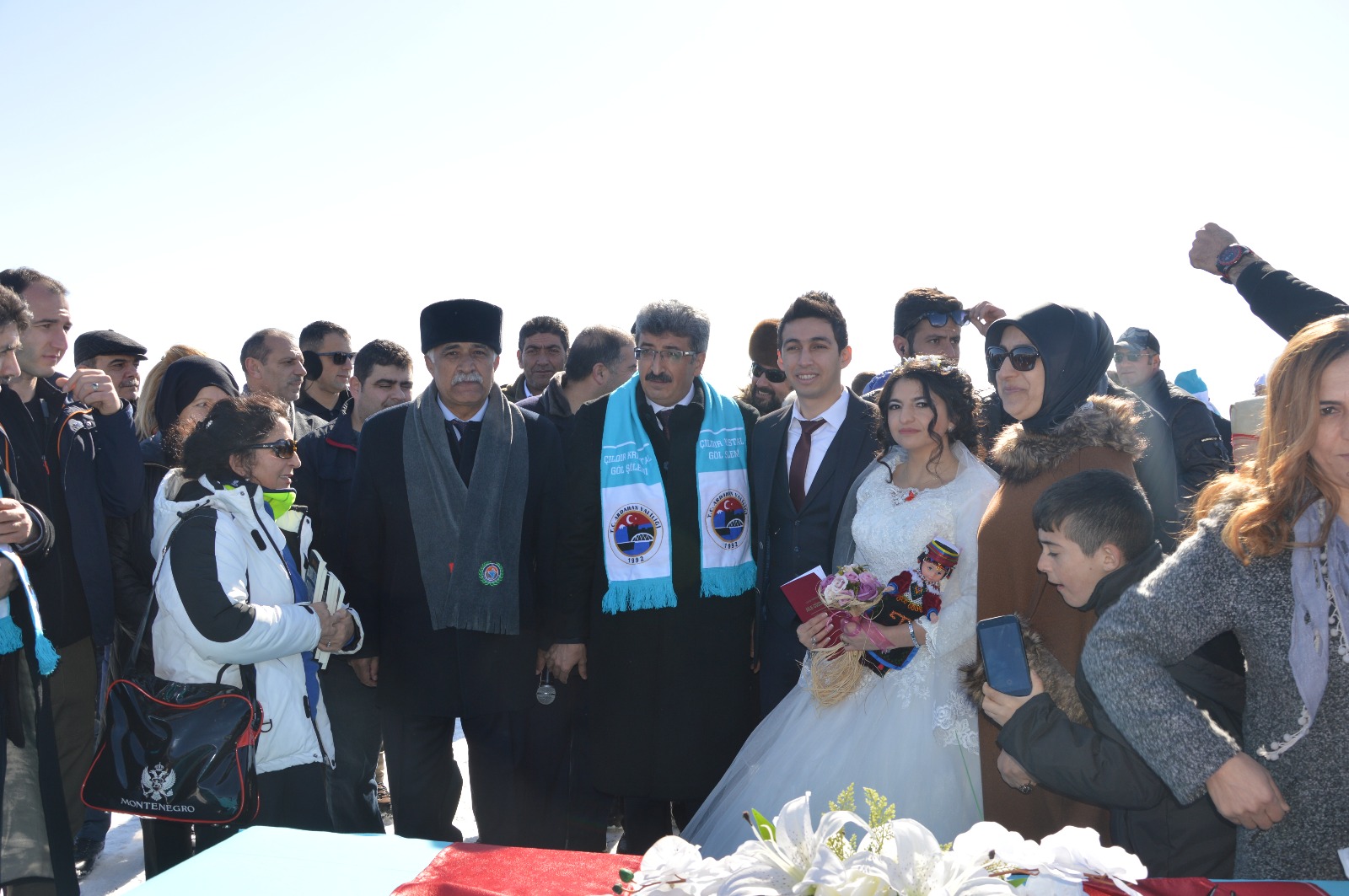 Ardahan’da bu yıl 5’incisi düzenlenen ‘Çıldır Kristal Göl Uluslararası Kış Şöleni’ renkli görüntülere sahne oldu. Hilal Yazıcı ve Özgür Koçak çifti, göl üzerinde nikah kıydı.