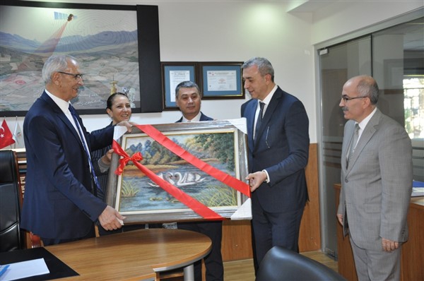 Cemil Yıldırım’a kumlama tekniği ile öğrencilerin hazırladığı tablo hediye edildi.