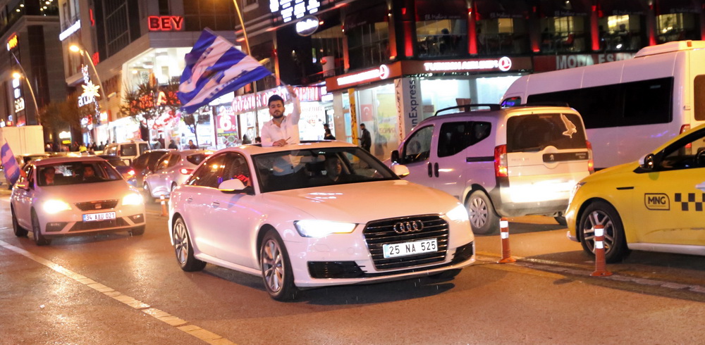 Büyükşehir Belediye Erzurumspor’un Süper Lig Yükselme Grubu’na çıkması kentte büyük bir sevince neden oldu. Altınordu maçında rakibiyle 1-1 berabere kalarak Play-off’a yükselen B.B. Erzurumspor’un elde ettiği başarıya sevinen Mavi Beyazlı taraftarlar soluğu Cumhuriyet Caddesi ve Havuzbaşı Kent Meydanı’nda aldı. Mavi Beyazlı bayraklarla slogan atan Dadaşlar, meşale yaktı. Cumhuriyet Caddesi’nde oluşan araç konvoyunda Erzurumlular Play-off’a yükselen takımlarını destekleyerek “Bu sevinç yetmez hedef Süper Lig” diyerek tezahüratta bulundu. Büyükşehir Belediye Erzurumspor’un Play-off’a yükselmesi şehirde coşkuyla kutlandı.