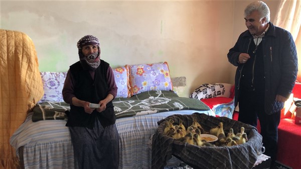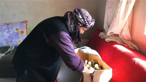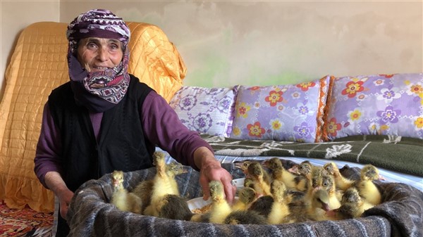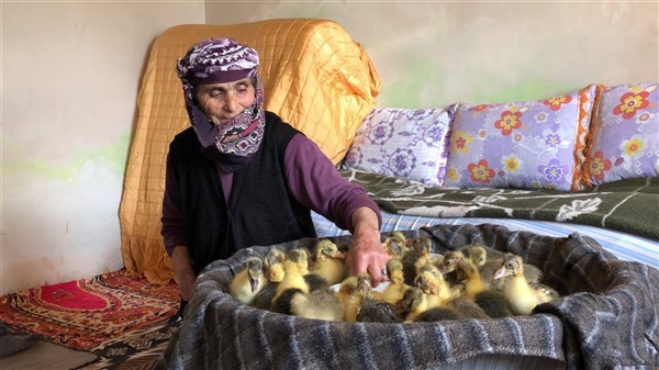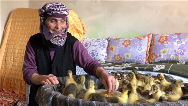 Kars’ın Arpaçay İlçesine bağlı Tomarlı Köyü’nde yalnız başına yaşayan 75 yaşındaki Hediye Aydoğan, evinde çıkamadığı için kaz ve hindi yavrularını odasında besliyor. Hediye nine, 3 yıl önce vefat eden eşi Ömer Aydoğan’ın hayrına da Cumhurbaşkanı Recep Tayyip Erdoğan’ın başlattığı ‘Biz Bize Yeteriz’ kampanyasına 200 TL bağışladı.