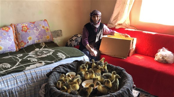 Evinden çıkamayan Karslı nine kaz ve hindi yavrularını odasında büyütüyor