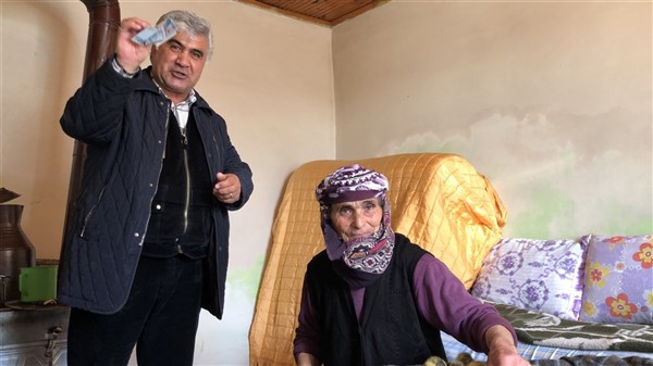 Cumhurbaşkanı Recep Tayyip Erdoğan’ın başlattığı ‘Biz Bize Yeteriz’ kampanyasına rahmetli eşinin hayrına 200 TL bağışta bulunan Hediye Aydoğan, “Allah milletimize de devletimize de zeval vermesin.” dedi. Koronadan korktuğunu da belirten Hediye nine, “Korona da ne bilim adam öldürüyor. Bende korkuyorum. Allah yardımcımız olsun.” diye konuştu.