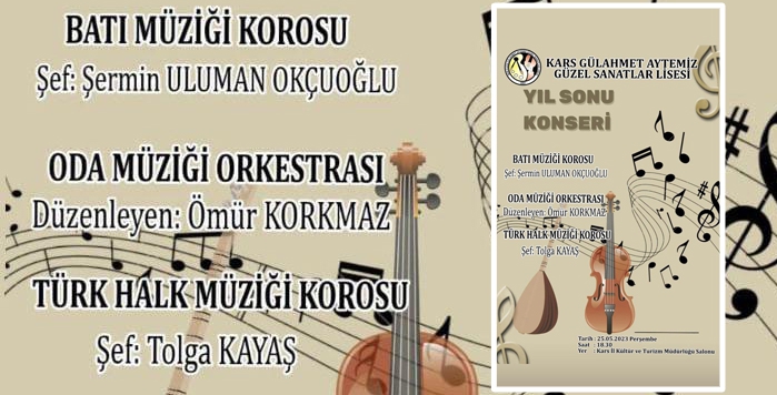 Yarın (25 Mayıs) saat 18:30’da İl Kültür Müdürlüğü Konferans Salonu’nda Gülahmet Aytemiz Güzel Sanatlar Lisesi’nin yılsonu konseri var.