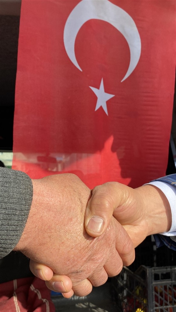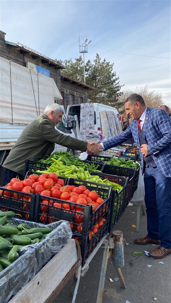 Hacı Memet Erdağ, başvurusunun ardından Pazar esnafını gezerek vatandaşlarla tokalaşıp hasbihal etti.