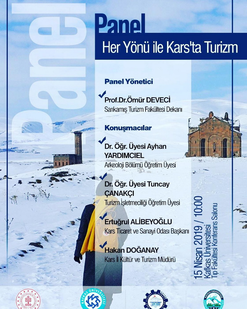 Kültür ve Turizm Bakanlığı, Kafkas Üniversitesi, Kars ticaret ve Sanayi Odası işbirliği ile Kafkas Üniversitesi Tıp Fakültesi Konferans Salonu’nda 15 Nisan 2019 günü saat: 10.00’da “Her yönüyle Kars’ta Turizm” Paneli düzenlenecek.