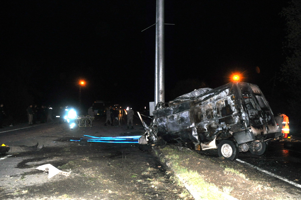 Edinilen bilgiye göre Ağrı Doğubayazıt tarafından gelen 65 EP 701 plaklı mülteci taşıyan minibüs aydınlatma direğine çarptı. Çarpma sonucu minibüste bulunan yolcular etrafa saçıldı. Minibüs alev alarak yanmaya başladı.