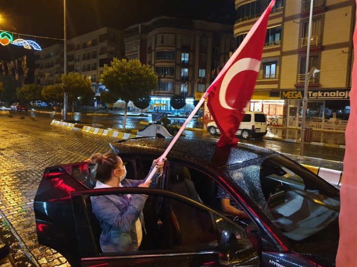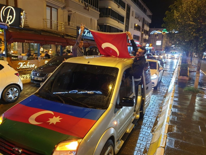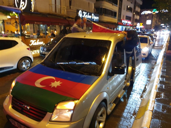 Iğdırlılar şehir merkezinde araçlarında Türk ve Azerbaycan bayrağı ile dolaşarak korna çalıp Azerbaycan'ın yanındayız. İşgal altındaki toprakların kurtarılmasını kutluyoruz dediler.