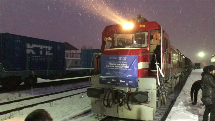 Türkiye'den Çin'e ihracat yükü taşıyan 754 metre uzunluğundaki tren, Kars Tren Garı'ından Gürcistan'ın Ahılkelek şehrine uğurlandı.