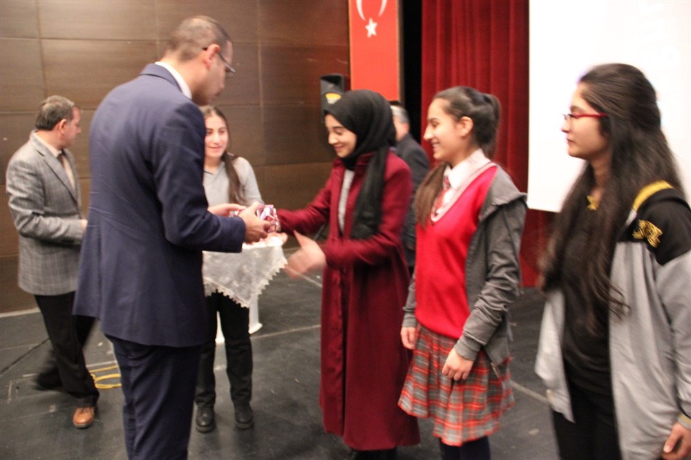 Daha sonra 10 Aralık Dünya İnsan Hakları Günü nedeniyle Ortaokullar arasında düzenlenen kompozisyon yarışmasında birinci olan Mihralibey Ortaokulu öğrencisi Büşra Kaya,