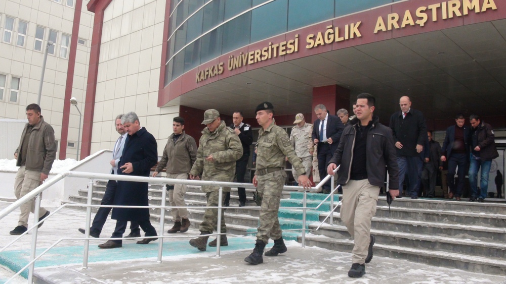 Askeri helikopterle Kafkas Üniversitesi (KAÜ) Sağlık Araştırma ve Uygulama Merkezi'ne sevk edilen 2 İranlı mühendis hastanedeki tedavisi sürüyor.
