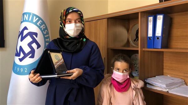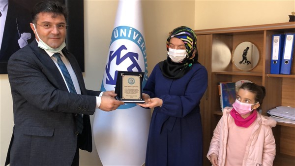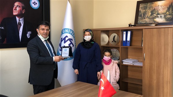 Kazım Karabekir Teknik Bilimler Meslek Yüksek Okulu Müdürü Prof. Dr. Onur Atakişi tarafından bu çalışmayı yapan Melek Çil Şentürk’e teşekkürlerini belirtmek adına plaket takdim etti.