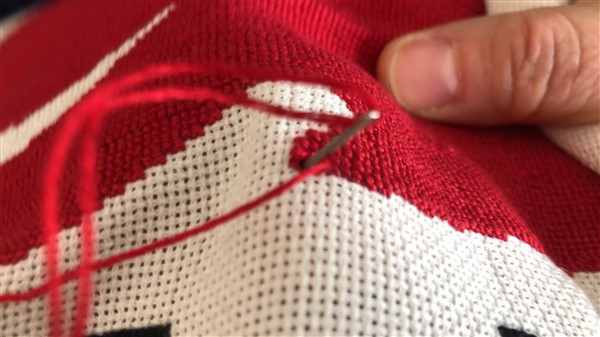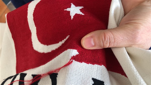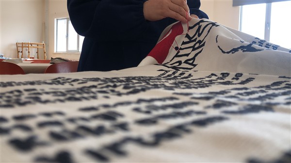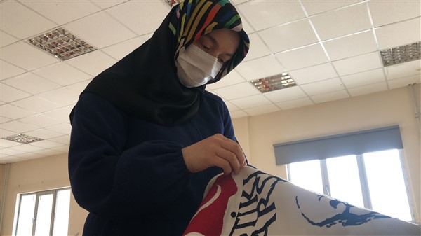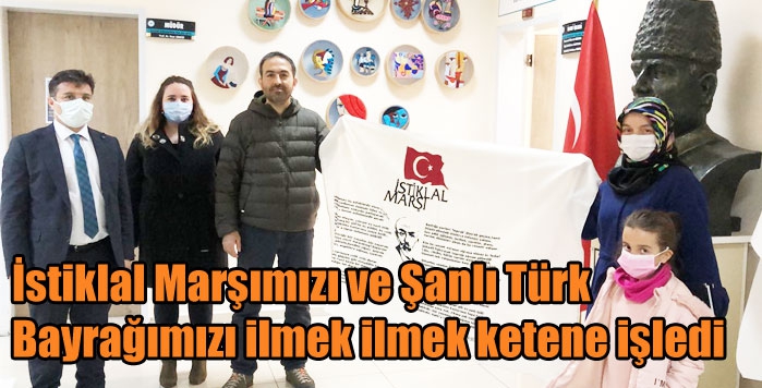 İstiklal Marşımızı ve Şanlı Türk Bayrağımızı ilmek ilmek ketene işledi