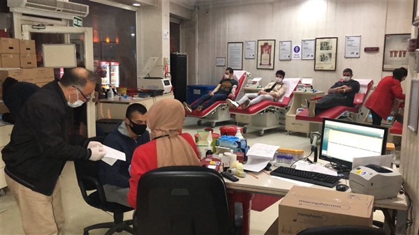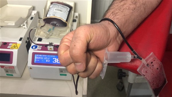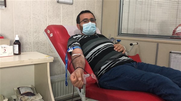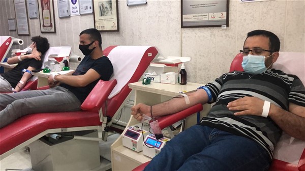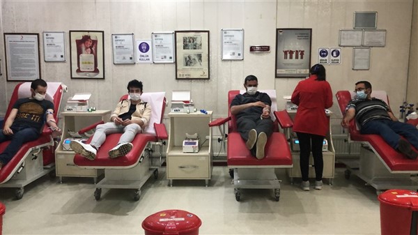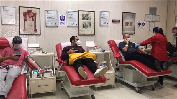 Yurt genelinde sürdürülen kampanya için çok sayıda öğretmen, imam hatip mezunları ve eğitim personeli Atatürk Caddesi’ndeki Kızılay Kan Merkezi’nde kan bağışında bulundu.