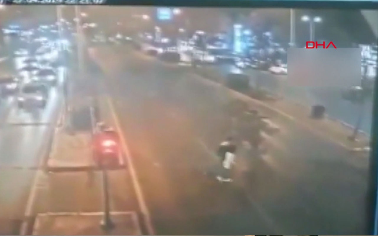 Görüntülerde, Bürge Yolbilir ve bir kişi karşıya geçmeye çalıştığı sırada, yolun sağ şeridinden gelen B.K. idaresindeki hafif ticari araç çarpıyor.