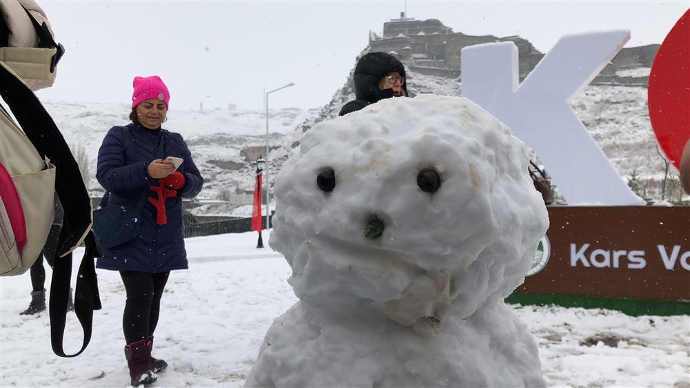 İzmir’den Kars’a gelen ziyaretçi gurubu ise İzmir’de görmedikleri karla karşılaşınca farklı bir etkinlik yaptılar. Kars gezisi anısına kalenin önünde kardan kadın yapan İzmirli kadınlar bundan büyük keyif aldılar. Elleriyle karları toplayıp kadın şekli verdiler ardından da kardan kadını süsleyerek hatıra fotoğrafları çektirdiler.