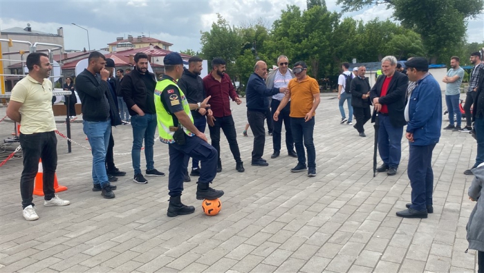 Kars İl Jandarma Komutanlığı ve Ankara’dan gelen Jandarma Genel Komutanlığı trafik timleri Gazi Kars Bedesten’de kurulan mobil trafik eğitim tırında ve çocuklar için kurulan trafik pistinde vatandaşları ve çocukları trafik kuralları hakkında uygulamalı olarak bilgilendirdi.