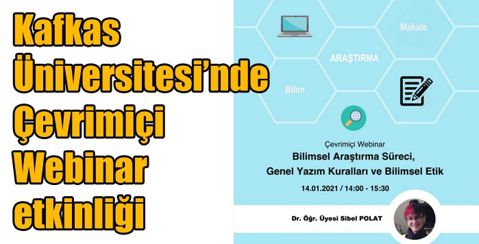 Kafkas Üniversitesi Devlet Konservatuvarı öğretim üyelerinden Dr. Öğr. Üyesi Sibel Polat tarafından düzenlenen “Bilimsel Araştırma Süreci, Genel Yazım Kuralları ve Bilimsel Etik” adlı Çevrimiçi Webinar etkinliği 14 Ocak 2021 tarihinde gerçekleştirildi.