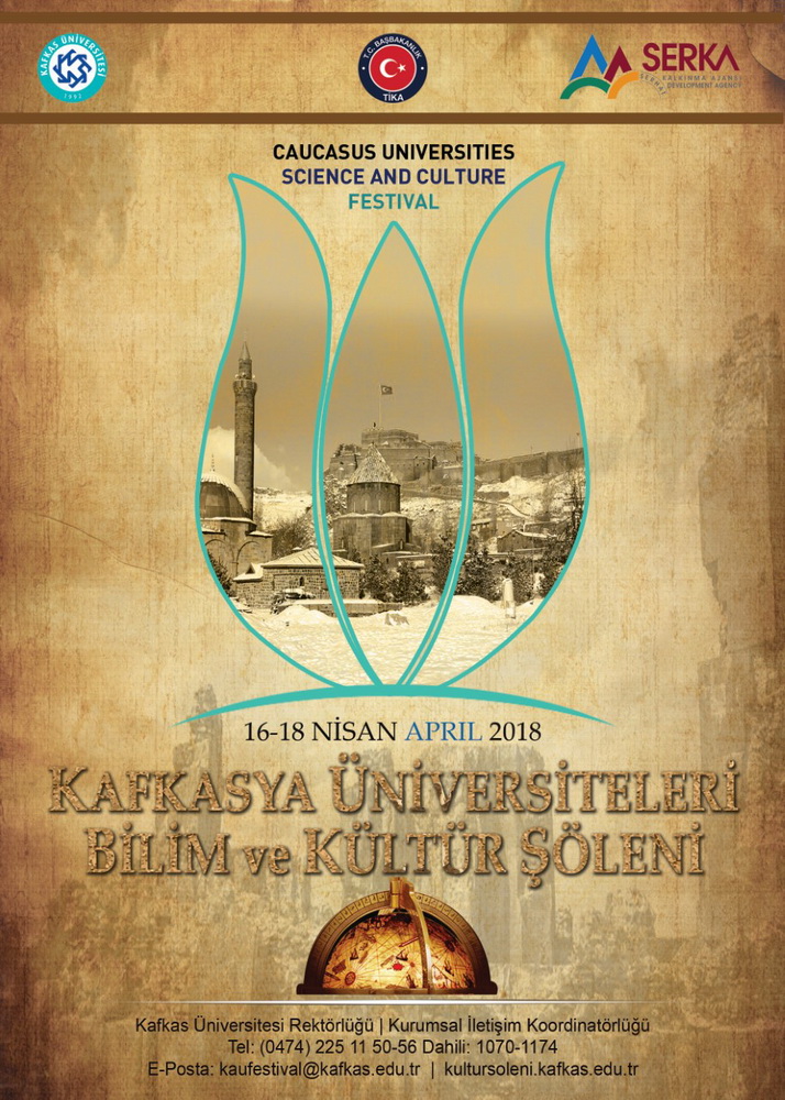 Kafkasların batıya açılan yüzü Kafkas Üniversitesi, 16-18 Nisan 2018 tarihleri arasında T.C. Başbakanlık TİKA desteğiyle, Azerbaycan, Türkmenistan, Özbekistan, Nahçıvan, Gürcistan, Irak ve İran’daki üniversite rektörlerini, çevre illerdeki üniversite rektörlerini ve beraberlerindeki heyetleri “Kafkasya Üniversiteleri Bilim ve Kültür Şöleni”nde ağırlayacak.