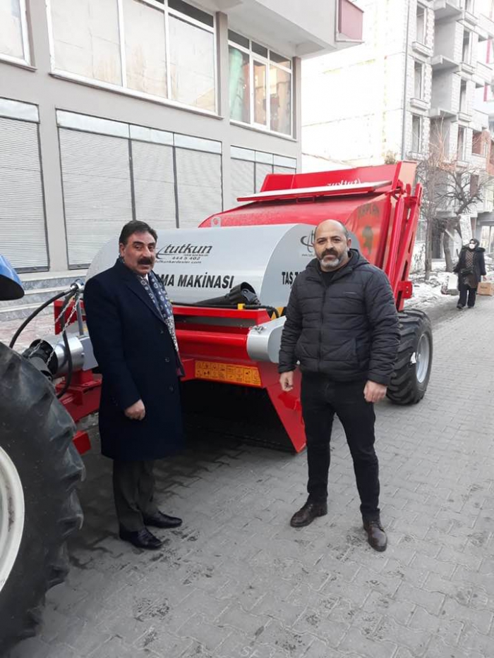 Kağızman Ziraat Odası Başkanı Sülhettin Günday, “Değerli çiftçilerimiz; bilindiği gibi Kağızman merkez ve köylerimizdeki ekili tarım arazilerimiz çekil ve taşlı olması zaten kısıtlı ve az olan arazilerimizin hem sürümünü hem verim ve hasadını düşürmektedir. Bu durum ziyaretlerde bulunduğumuz tüm köylerde çiftçilerimizin de ortak şikayetleri ve talepleri bu yönde bizler bu sorunu. Tabiî ki görmemezlikten gelemezdik. Kağızman Ziraat Odası başkanlığı olarak çiftçilerimizin hizmetine sunmak için 1 adet traktör orijinal ön kepçesi ile beraber ve 1 adet taş toplama makinesini almış ve çiftçilerimizin hizmetine sunmuş bulunmaktayız. Çiftçilerimizin alın teri kutsaldır, değerlidir. Çiftçilerimize hizmet hakka hizmet bu duygu ve düşüncelerle 2021 yılı vatanımıza milletimize çiftçilerimize bol bereketli bir yıl olması dileğiyle hayırlı uğurlu olsun.” dedi.