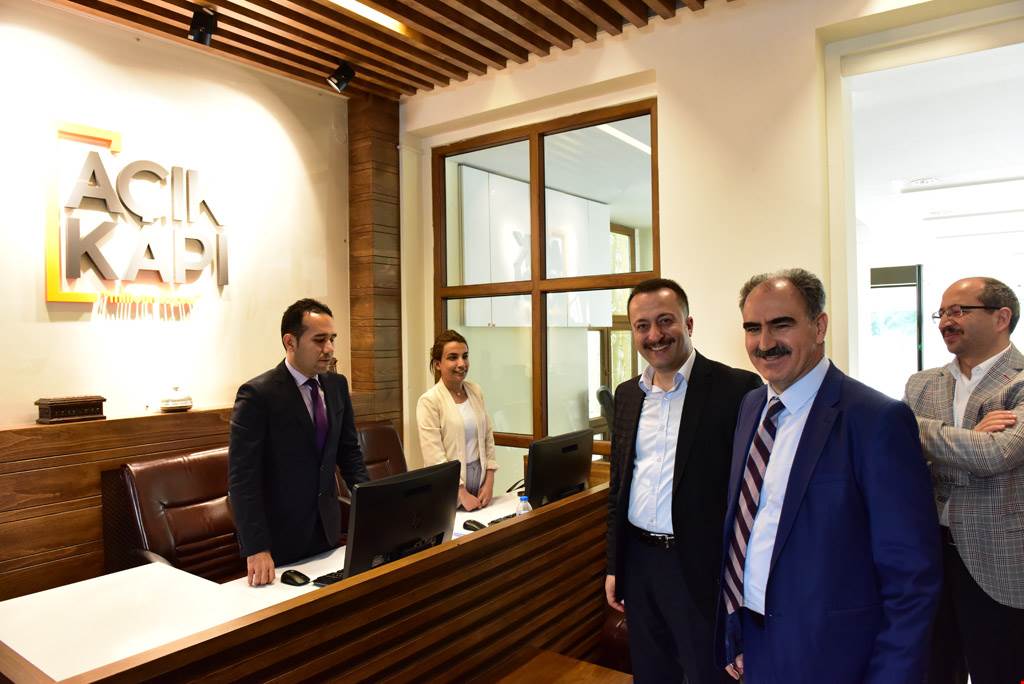 Vali Vahdettin Özkan ve İçişleri Bakanlığı Personel Genel Müdürü Bilal Şentürk, Açık Kapı Bürosu çalışanlarını ziyaret ederek vatandaşlara sunulan hizmetler hakkında bilgiler aldı.