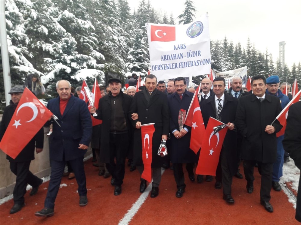 Kars Ardahan Iğdır (KAI) Dernekler Federasyonu, Ankara Keçiören Belediyesi ile birlikte Sarıkamış Şehitlerini Anmak üzere Sarıkamış Şehitlik Anıtına yürüyüş düzenlendi.