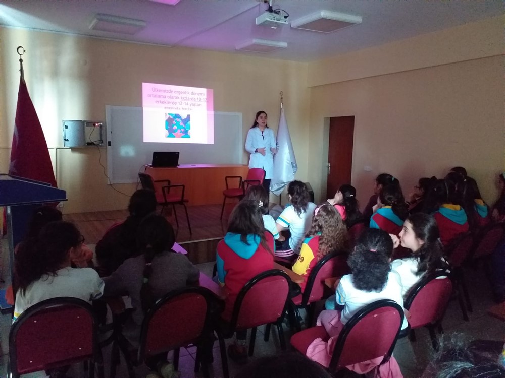 Geçtiğimiz gürlerde de öğrencilere ergenlik dönemi anlatıldı. Okulun rehber öğretmeni tarafından verilen eğitici seminer yoğun ilgi gördü.