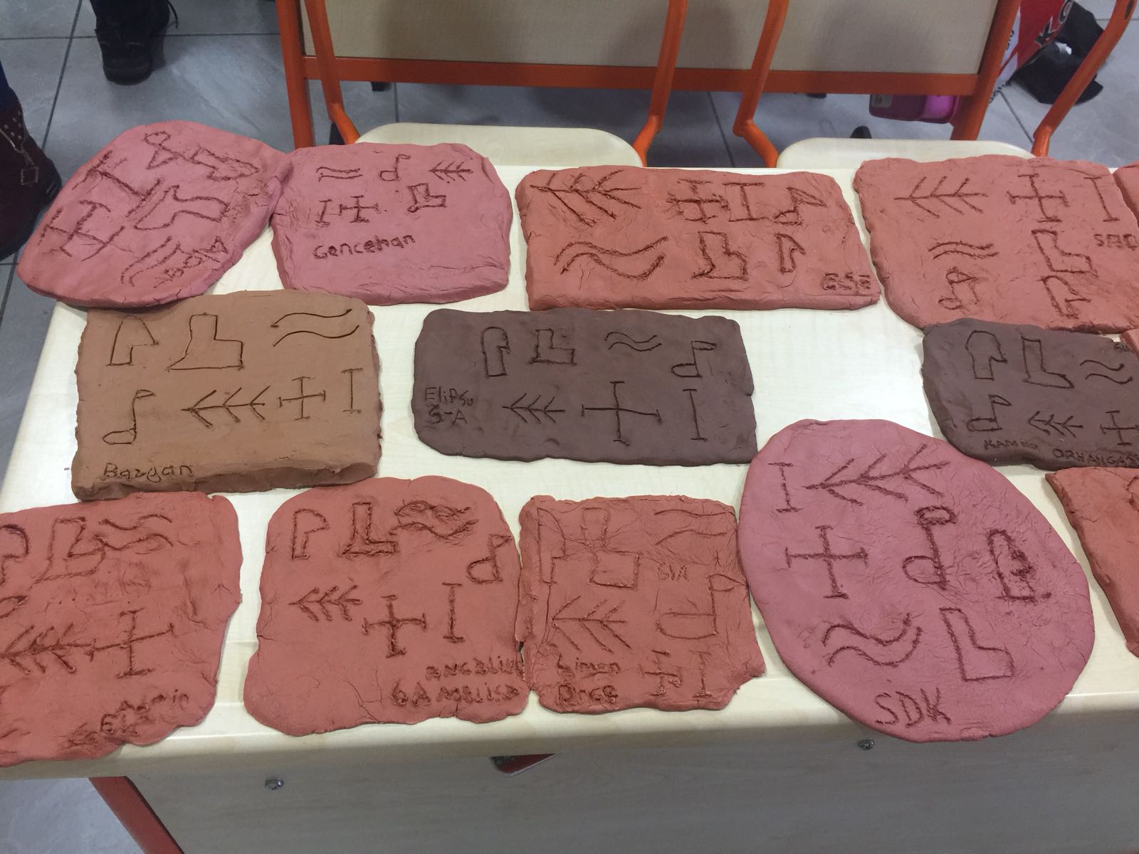 Sosyal bilgiler dersine büyük ilgi duyan öğrenciler için her gün farklı çalışmalar uygulanıyor. Yaşayarak öğrenme kabiliyetlerini geliştiren öğrenciler Sümer tabletleriyle yaptıkları çalışmaları çok beğendiler.