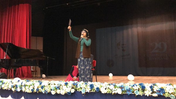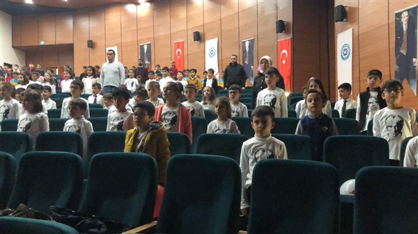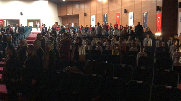 Etkinlik; saygı duruşunda bulunulması, İstiklal marşının okunmasıyla başladı. Minik öğrencilerin yürekleriyle okudukları İstiklal marşı salondaki ses sistemine rağmen gür bir sesle çıktı.