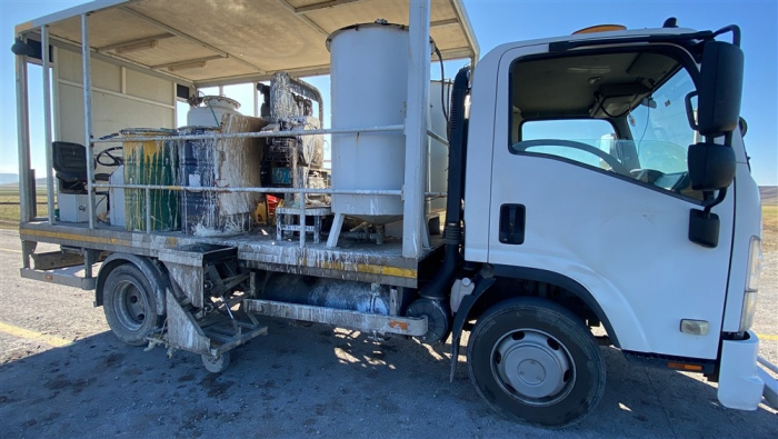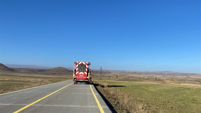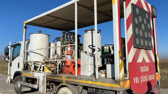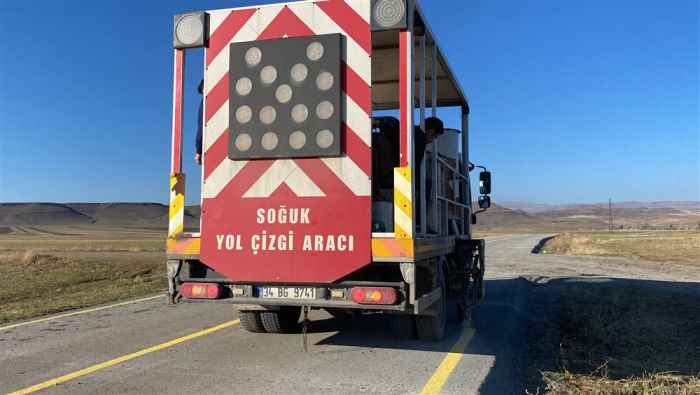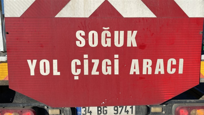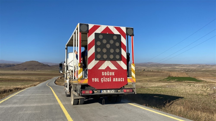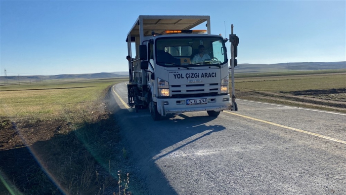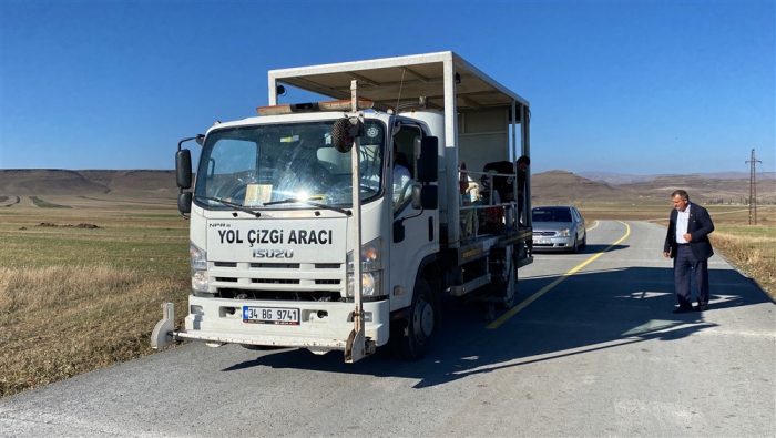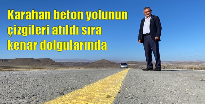 Karahan beton yolunun çizgileri atıldı sıra kenar dolgularında