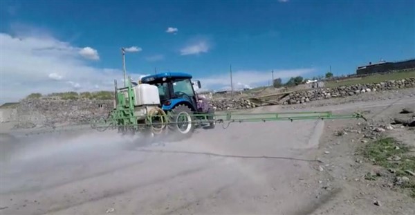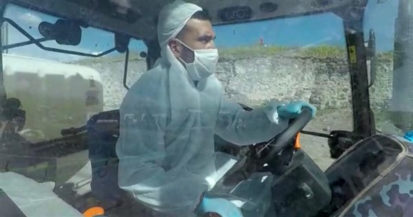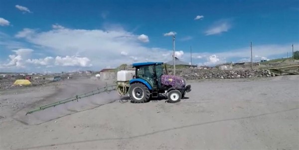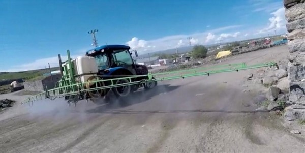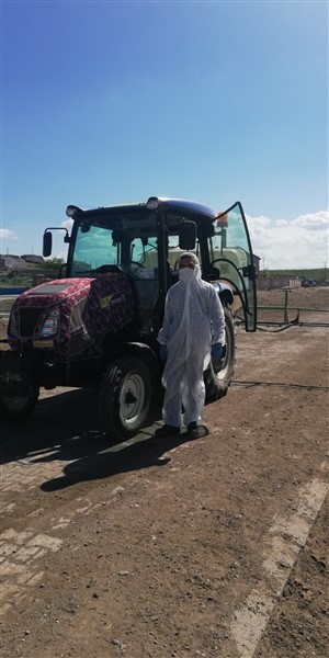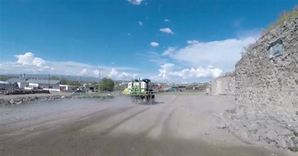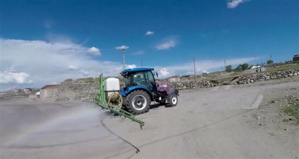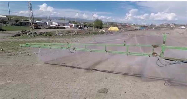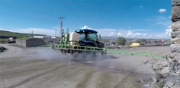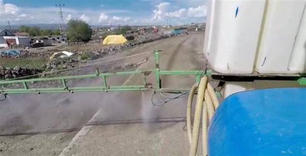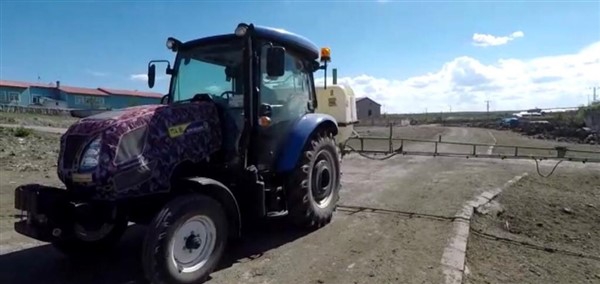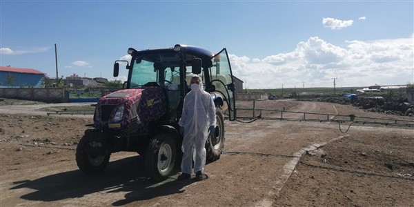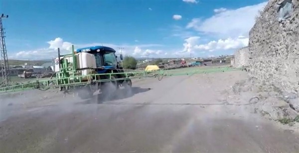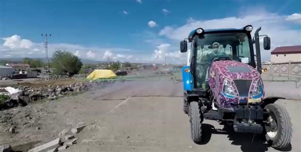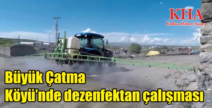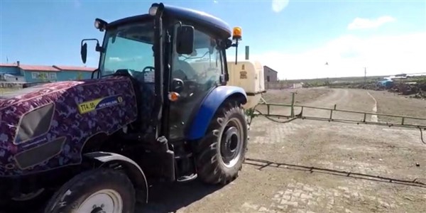 Kars’ın Arpaçay İlçesi’ne bağlı Büyük Çatma Köyü gençleri koronavirüs ile mücadele kapsamında köy içi tüm yollarını traktöre bağladıkları özel bir ilaçlama makinesi ile dezenfekte ettiler.