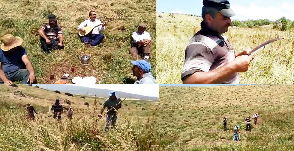 Bölgede Ot hasat mevsimini başlamasıyla birlikte tırpanla Ot biçen ırgatlar öylen yemeği molasında, Aşık Ayhan Şimşekoğlu ve Atalay Aslan'ın söylediği türkülerle yorgunluk attılar.