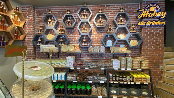 A’dan Z’ye tüm süt ve süt ürünlerinin satışının yapıldığı Kars Atabey Süt Ürünleri konsepti, sunumu ve hijyenik ortamıyla müşterilerine nezih bir mekanda hizmet vermenin haklı gururu yaşıyor.