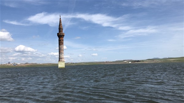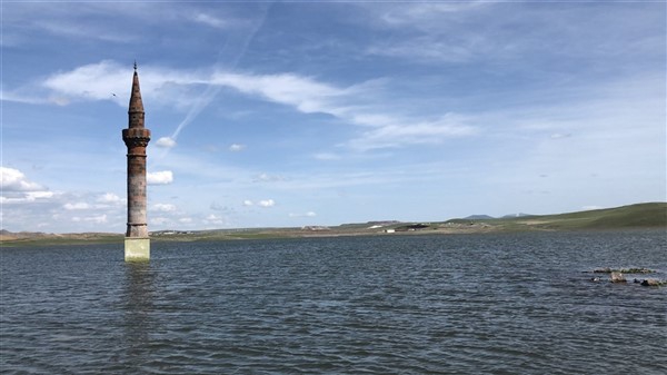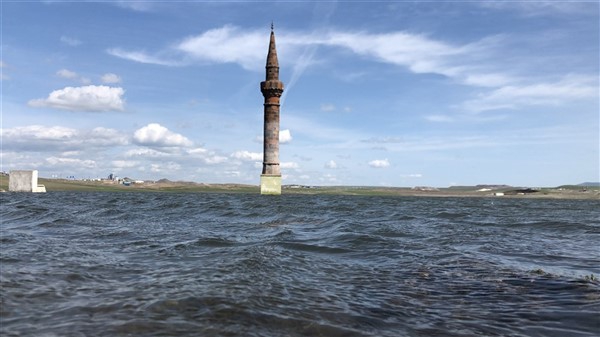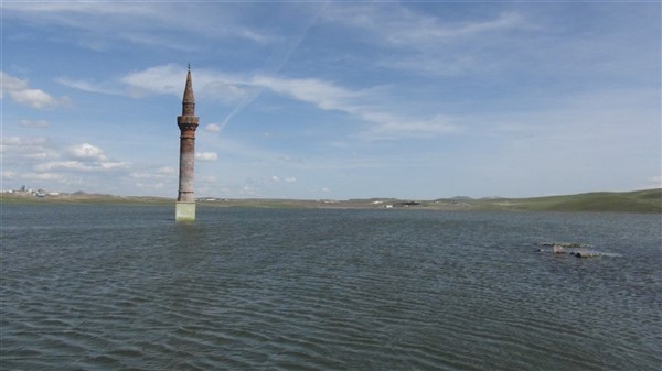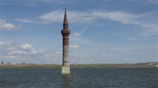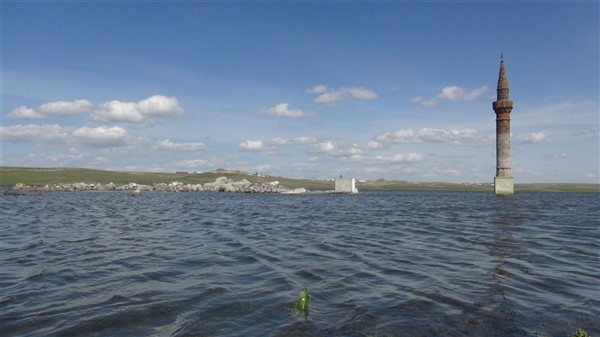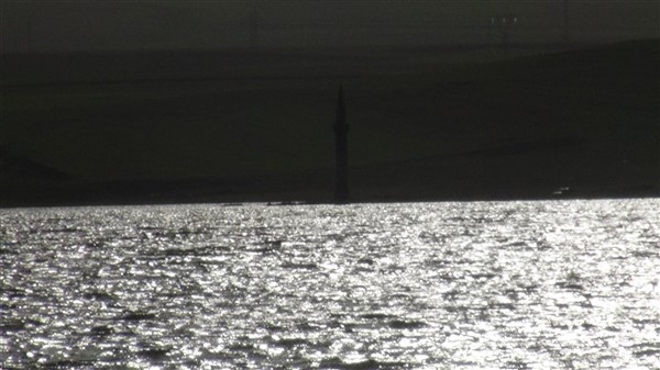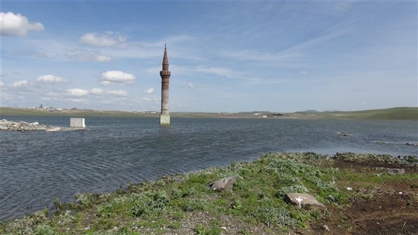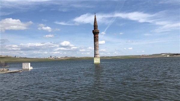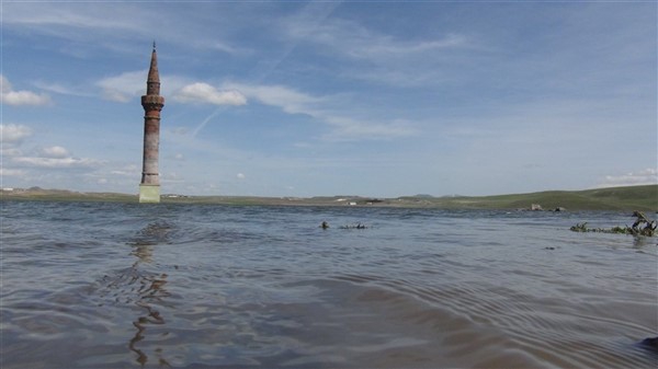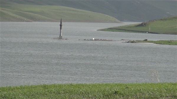 Çamçavuş köyünde geriye kalan tek minare suyun ortasında güzel görüntüler oluşturdu