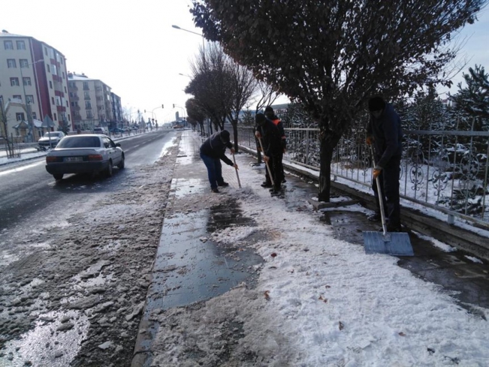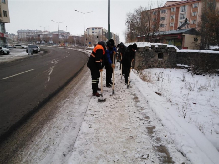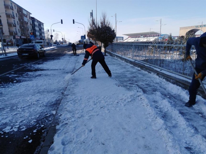 Ana arterler başta olmak üzere bulvar ve caddelerde Kars Belediyesi Fen İşleri Müdürlüğü ekipleri 7/24 kar temizliği yaparken, yayaların can güvenliğini sağlamak için Kars Belediyesi Temizlik İşleri Müdürlüğü ekipleri de kaldırımlarda ve yaya geçitlerde tuzlama ve temizlik çalışması gerçekleştiriyor.
