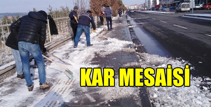 Vali/Belediye Başkan Vekili Türker Öksüz'ün talimatıyla; Kars Belediyesi Temizlik İşleri Müdürlüğü ekiplerimiz etkili olan kar yağışı nedeniyle ana arterler ile bulvar ve caddelerdeki yollar başta olmak üzere yayaların kullandığı kaldırım ve geçitlerde kar temizliği, buzlanmaya karşı kaldırımlarda da tuzlama çalışması gerçekleştiriyor. Kent genelinde etkili olan kar yağışı nedeniyle önlemlerini artıran Kars Belediyesi, karla mücadelede yoğun mesai harcıyor.