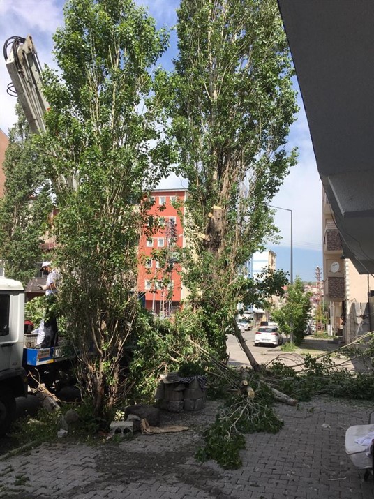 Kars’ta kent merkezi ve mahallelerde polen ve pamukçuk üreten ve peyzaj değeri olmayan kavak ağaçlarının kesimi için sahipleriyle irtibata geçen Belediye Park ve Bahçeler Müdürlüğü görevlileri, güvenli bir şekilde kesim işlemlerini yürütüyor. İlk önce çevre güvenliğini sağlayan Belediye ekipleri, vatandaşların ve çevrenin zarar görmemesi için tedbirli biçimde kesim işlemlerini gerçekleştiriyor.Vatandaşların Belediyeye ulaşarak talep etmeleri durumunda, aciliyet sırası gözetilerek kesim işlemi gerçekleştiriyor.