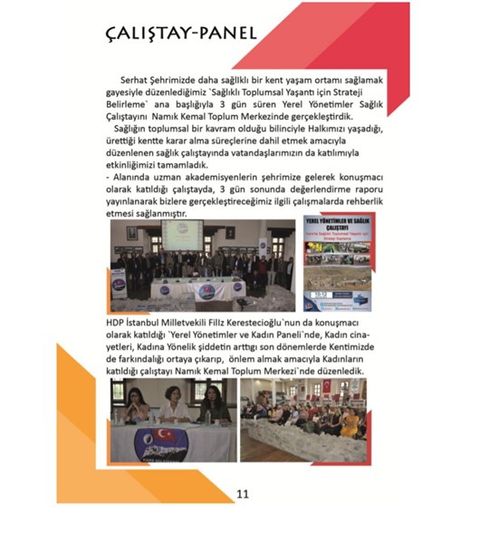 1-Serhat Şehrimizde daha sağlıklı bir kent yasam ortamı sağlamak gayesiyle duzenlediğimiz `Sağlıklı Toplumsal Yaşantı icin Strateji Belirleme` ana başlığıyla 3 gün süren Yerel Yönetimler Sağlık Calıştayını ‘ Namık Kemal Toplum Merkezinde gerçekleştirdik.