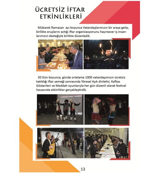 -30 Gün boyuncu günde ortalama 1000 vatandaşımızın ücretsiz katıldığı iftar yemeği sonrasında Yöresel Aşık dinletisi, Kafkas Gösterileri ve Meddah oyunlarıyla her gün düzenli olarak festival havasında organizasyonlar gerçekleştirdik.