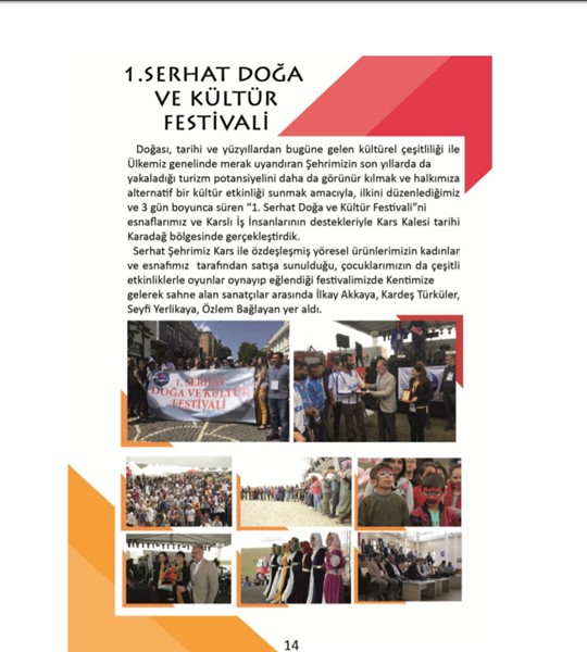 Doğası, tarihi ve yüzyıllardan bugüne gelen kültürel çeşitliliği ile Ülkemiz genelinde merak uyandıran Şehrimizin son yıllarda da yakaladığı turizm potansiyelini daha da görünür kılmak ve halkımıza alternatif bir kültür etkinliği sunmak amacıyla ilkini düzenlediğimiz ve 3 gün boyunca süren `1. Serhat Doğa ve Kültür Festivalini` Esnaflarımız ve Karslı İş İnsanlarının destekleriyle Kars Kalesi tarihi Karadağ bölgesinde gerçekleştirdik.