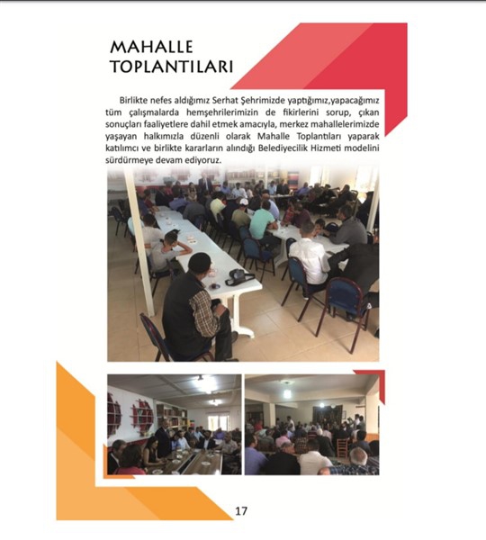 -Birlikte nefes aldığımız Serhat Şehrimizde yaptığımız, yapacağımız tüm çalışmalarda hemşehrilerimizin de fikirlerini sorup, çıkan sonuçları faaliyetlere dahil etmek amacıyla, merkez mahallelerimizde yaşayan halkımızla düzenli olarak 'Mahalle Toplantıları' yaparak katılımcı ve birlikte kararların alındığı Belediyecilik Hizmeti modelini sürdürmeye devam etmekteyiz.